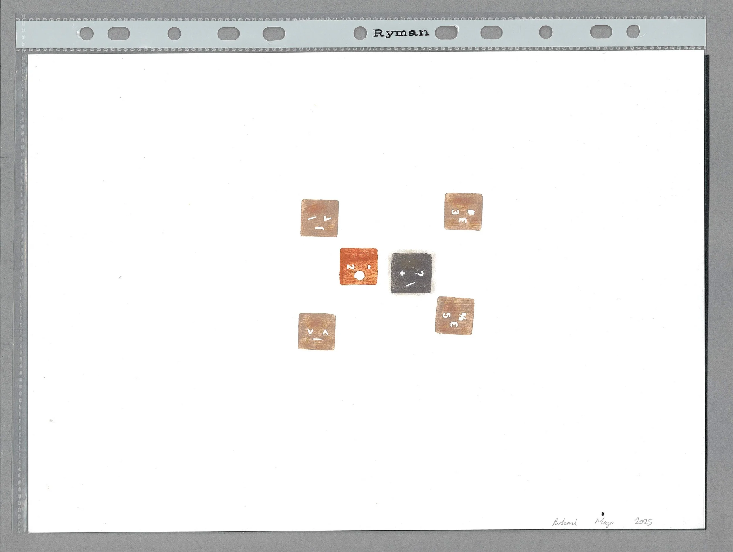 One woodblock monoprint from Keyboard Warriors shown, ink on paper, 30 x 21cm, 2025 included in the Catalyst Arts 2026 Members Show, Belfast